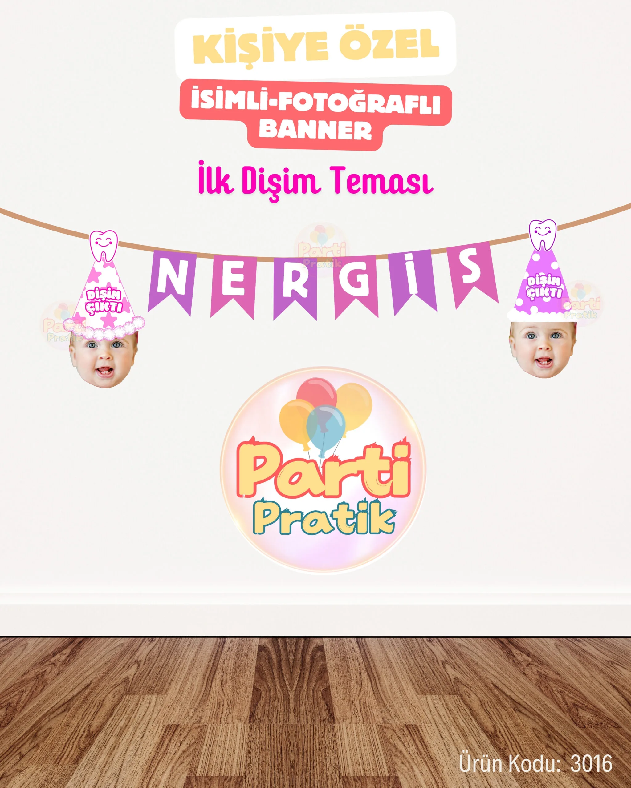 Fotoğraflı-İsimli Banner – Dişim Çıktı Konsepti, doğum günü partilerinizi kişi özel hazırlamak partinizi renklendirecektir. Pasta üzeri süsler kişiye özel olarak hazırlanmaktadır. Konseptinizi tamamlayacak, çok tatlı parça olacak, geleceğe güzel bir anı olarak kalacak. Kişiye özel olarak hazırlanan isimli banner sipariş verdiğiniz gün kargoda. (12:00’a kadar verilen siparişler aynı gün, 12:00’dan sonra verilen siparişler en geç ertesi gün kargoya verilmektedir). Pasta süsleri kişiye özel olup, özenle hazırlanır.