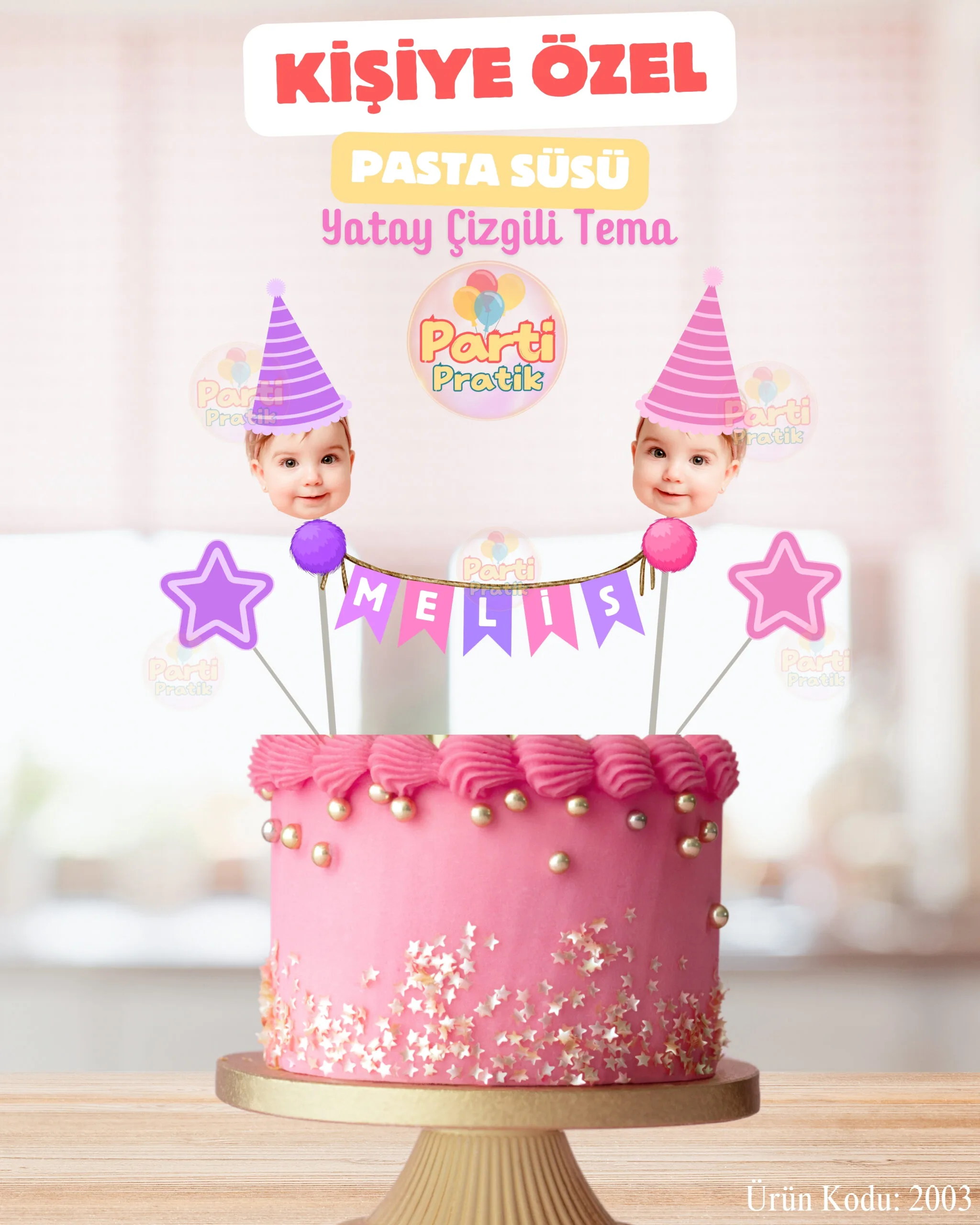 Fotoğraflı-İsimli Pasta Süsü – Yatay Çizgili Konsept, doğum günü partilerinizi kişi özel hazırlamak partinizi renklendirecektir. Pasta üzeri süsler kişiye özel olarak hazırlanmaktadır. Konseptinizi tamamlayacak, çok tatlı parça olacak, geleceğe güzel bir anı olarak kalacak. Kişiye özel olarak hazırlanan pasta süsü sipariş verdiğiniz gün kargoda. (12:00’a kadar verilen siparişler aynı gün, 12:00’dan sonra verilen siparişler en geç ertesi gün kargoya verilmektedir). Pasta süsleri kişiye özel olup, özenle hazırlanır.