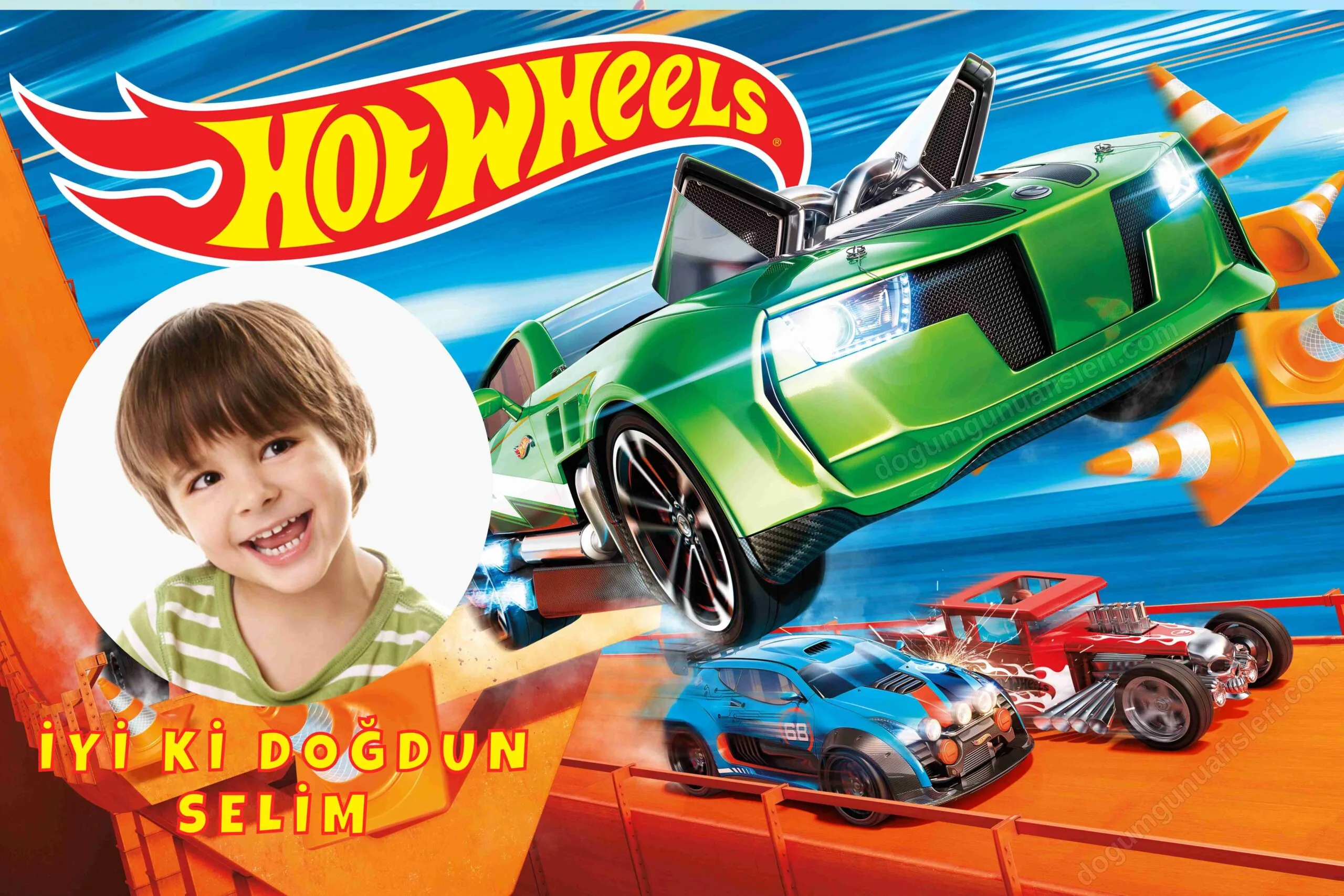 Hot Wheels Doğum Günü Afişi, doğum günü partileriniz için konseptinizi tamamlayacak en güzel süsleme. Kişiye özel olarak hazırlanan doğum günü afişiniz sipariş verdikten sonraki gün kargoda.