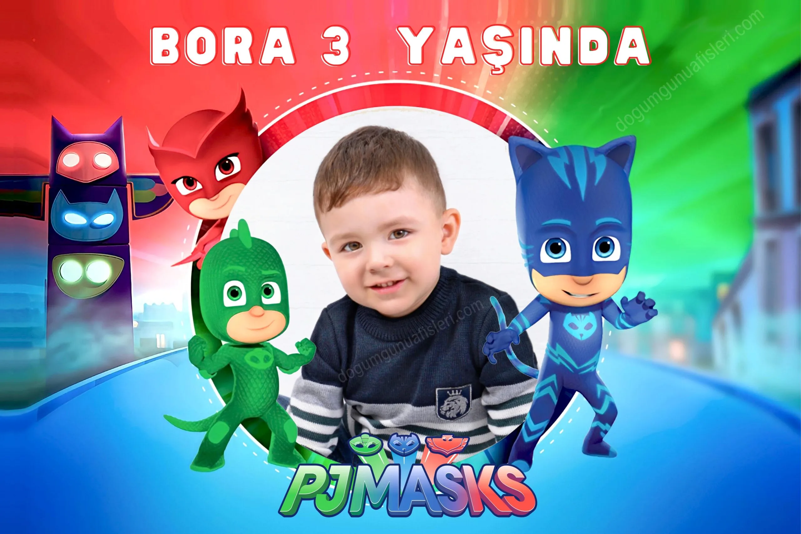 Pijamaskeliler Doğum Günü Afişi, doğum günü partileriniz için konseptinizi tamamlayacak en güzel süsleme. Kişiye özel olarak hazırlanan doğum günü afişiniz sipariş verdikten sonraki gün kargoda.